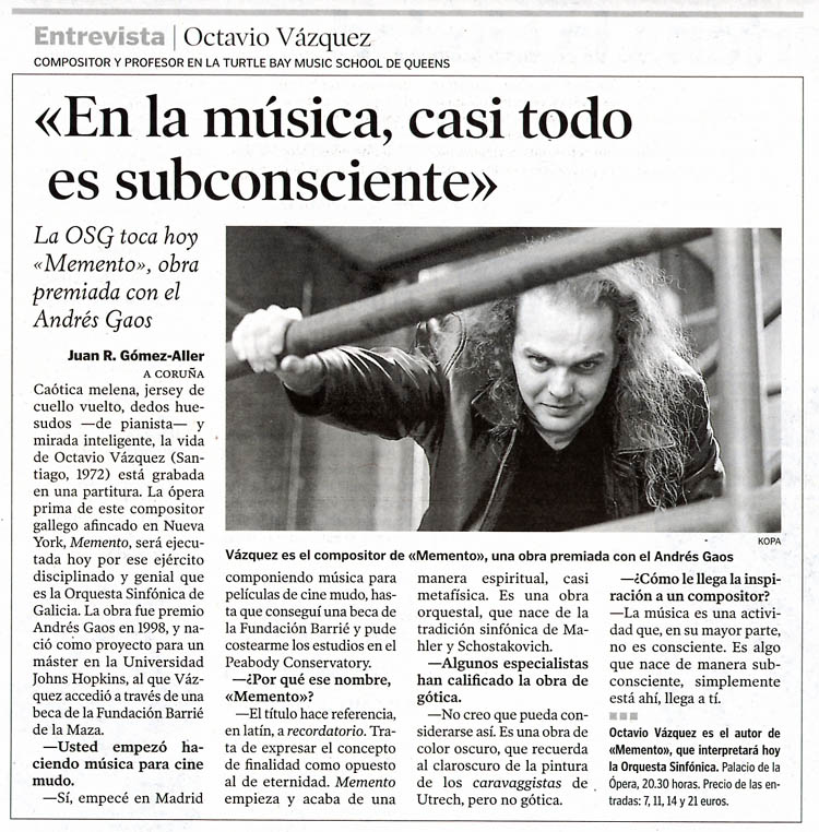 Interview in La Voz de Galicia, November 28, 2002![]() Back to top |